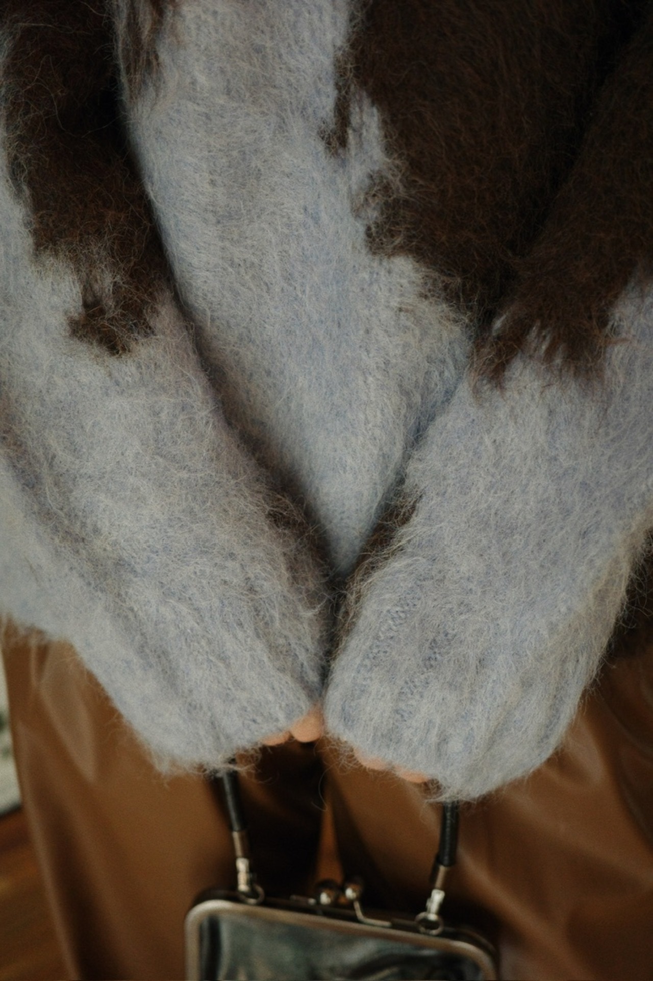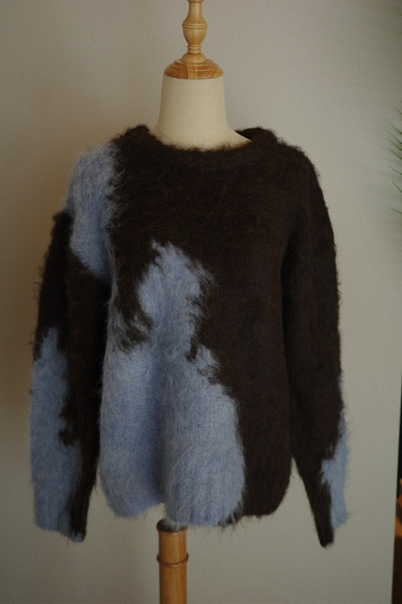 【 Hunch】ミックスヤーン インターシャ柄 ブロッキングニット/ブラウン