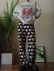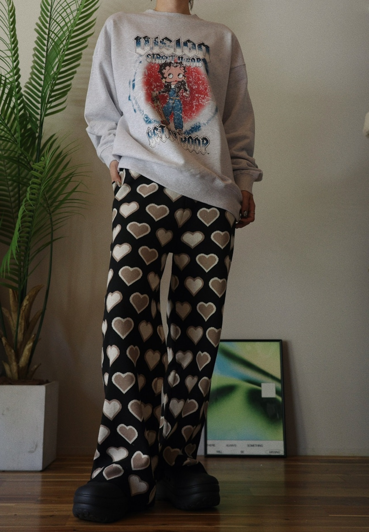 【 mi via loca 】カラーハート柄ニットパンツ/ブラック