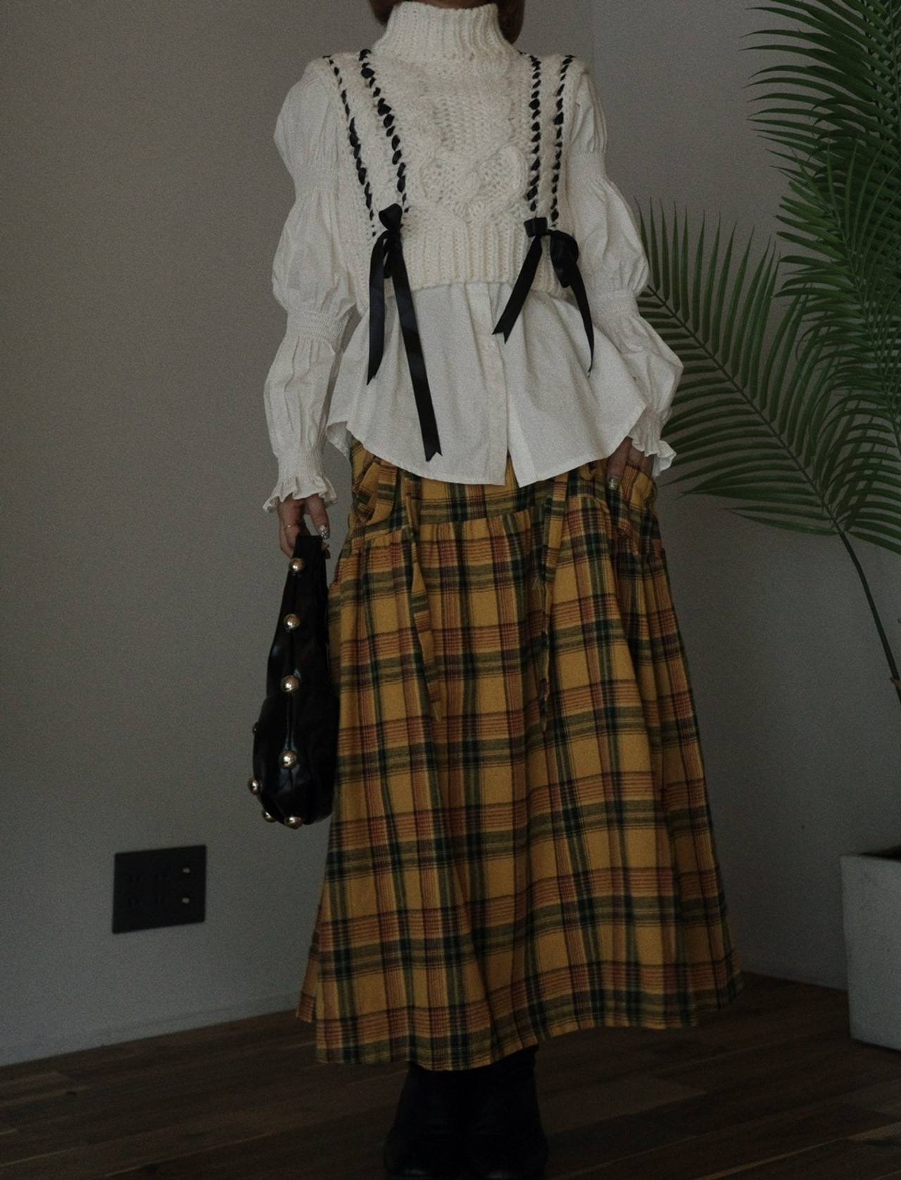 リボンベストニット/オフホワイト