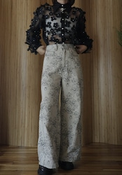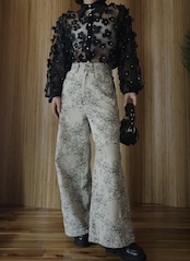 花柄ジャガードデニム ストレートパンツ/アイボリー