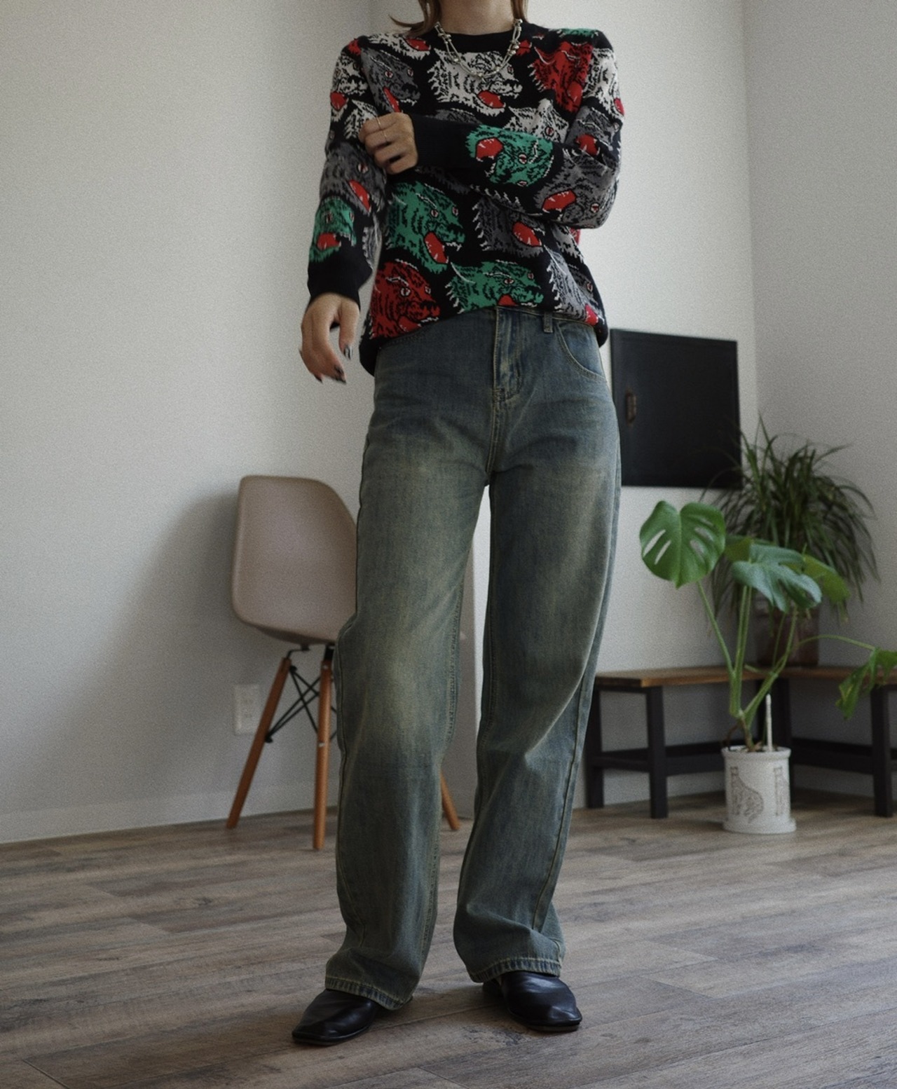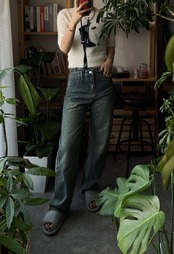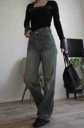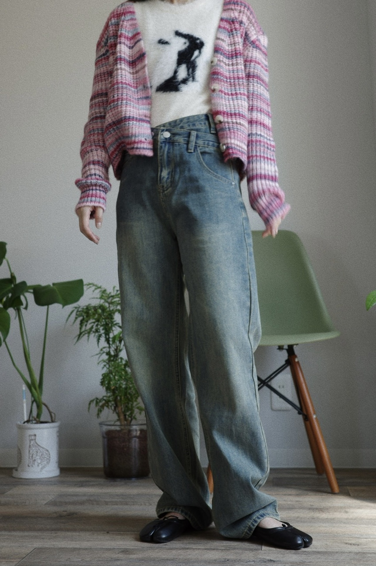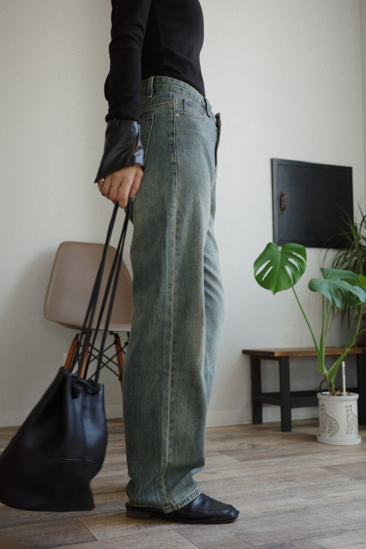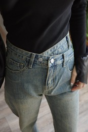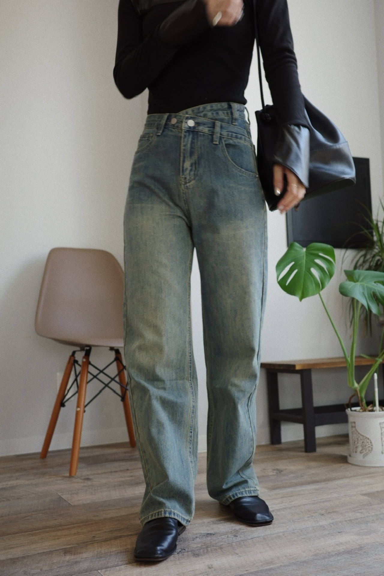 レイヤード風なウエストでインスタイルが楽しくなるデニムパンツ。