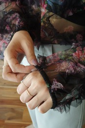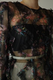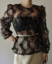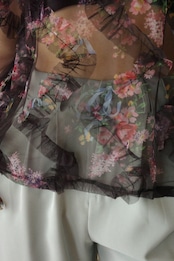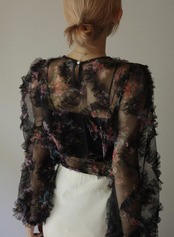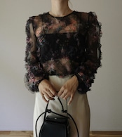 フラワーフリルシアーブラウス/ブラック