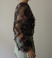 シアー素材にカラフルな花柄模様フリンジで個性的なブラウス